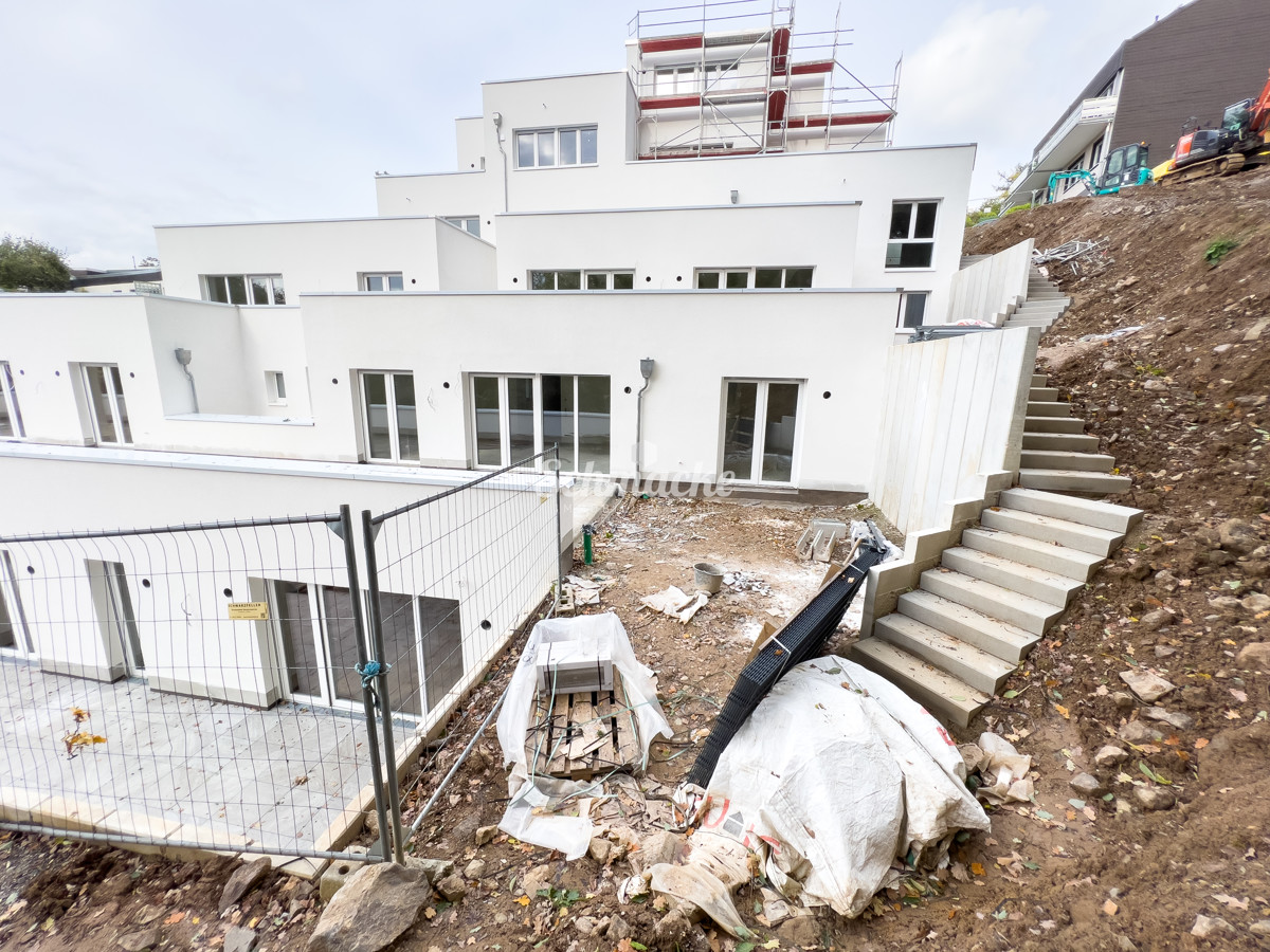 Es handelt sich um eine Terrassenwohnung mit alleiniger Gartennutzung (Whg.8). Bei den Fotos sehen Sie Beispiel-Bilder der Ausstattung des Projektes. Der Garten, (kleine Grünfläche), befindet sich im Anschluss der Terrasse rechts.